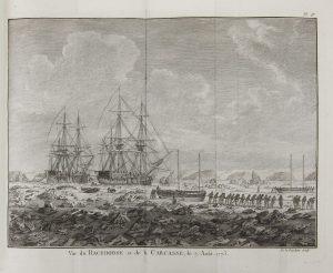 PHIPPS (Constantin John).{CR}Voyage au Pôle Boréal, fait en 1773, par ordre du roi d’Angleterre.{CR}Paris : Saillant & Nyon, Pissot, 1775. — In-4, 248 x 199 : xij, 259 pp., (1 f.), 3 cartes, 9 planches. Demi-veau vert, dos lisse orné,...