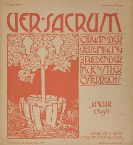 KLIMT (Gustav) - KURZWEIL (Max). Ver sacrum. Vienne : Gerlach & Schenk, janvier 1898. — 12 numéros en un volume in-4, 290 x 283. Cartonnage de toile bleue à la bradel de l’éditeur, titre doré et illustration en bleu foncé sur le premier...
