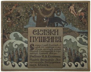 BILIBINE (Ivan Yakolévitch). Skazki Pouchkina. Skazka o tsar Saltane. [Contes de Pouchkine. Conte du Tsar Saltan.] Saint-Pétersbourg : Expédition de l’approvisionnement des papiers d’État, 1905 [1906]. — In-4 oblong, 256 x 324 : 20 pp.,...