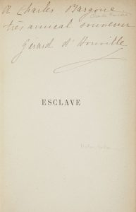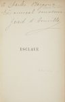 HOUVILLE (Gérard d’). Esclave. Paris : Calmann-Lévy, [1905]. — In-18, 182 x 115 : (4 ff. premier blanc), 212 pp., couverture imprimée. Demi-maroquin marron à coins, dos à nerfs, tête dorée, non rogné, couverture conservée (S. David)....