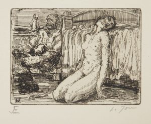 préface de Grillot de Givry, ne fut tiré qu’à 100 exemplaires. Il propose 12 eaux-fortes originales hors texte de Louis Jou, dont une répétée sur la couverture, qui sont autant d’illustrations destinées à dénoncer le viol des femmes perpétré par les soldats allemands durant la première guerre mondiale. Exemplaire sur papier vélin fort. Les gravures portent la lettre E et la signature autographe de Louis Jou. Chemise insolée et déchirée au dos avec manques. Les gravures et la couverture sont parfaitement conservées.