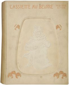 [REVUE SATIRIQUE] L’Assiette au beurre. Paris : Les Publications modernes, 1901-1912. —598 numéros reliés en 10 volumes in-4, toile beige d’édition, premiers plats ornés d’une illustration gaufrée, dos lisses. Collection complète...