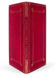 In-8 de (8) ff. frontispice compris, 88 pp., 92 pp. mal chiffrées 94 sans manque: maroquin rouge à grain long, dos lisse orné, titre en long, double encadrement de filets dorés sur les plats avec fleurons dans les angles, coupes et bordures intérieures décorées, tranches dorées (Koehler).