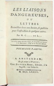 Roman épistolaire “scandaleux” rédigé en garnison par un capitaine d'artillerie, Les Liaisons dangereuses connurent dès leur publication un succès égal à celui de La Nouvelle Héloïse vingt ans plus tôt.