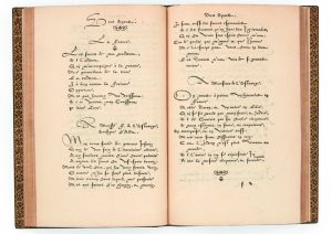 ►Entièrement composé en caractères de civilité sur les presses de Robert Granjon, le volume est présenté par Brunet comme étant l'un des plus rares parmi ceux imprimés dans ce caractère.