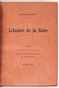 GOURMONT (Rémy de). Litanies de la Rose. Paris, Édition du Mercure de France, 1892.