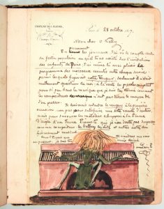 La lettre du 31 octobre 1847 comprend une caricature des deux “Empereurs de la littérature”, Alexandre Dumas et Victor Hugo.