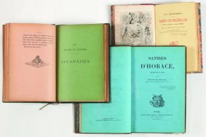 [PAPIERS DE COULEUR]. 3 livres imprimés sur des papiers de couleur. 1838-1889.