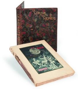 In-4: broché, couvertures illustrées, chemise souple de l'éditeur en maroquin brun gaufré recouvert de motifs japonisants.