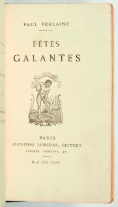 VERLAINE (Paul). Fêtes galantes. Paris, Lemerre, 1869.