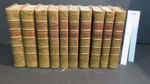 10 volumes in-8°, reliure d'époque en plein veau, dos à nerfs ornés, pièces de titre et de tomaison en maroquin bordeaux légèrement insolé. Filet doré sur les coupes, tranches marbrées.