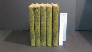 5 volumes in-8°, reliure romantique d'époque, demi-basane verte, dos lisse avec fers dorés romantiques, tranches marbrées en accord avec les feuilles de garde.