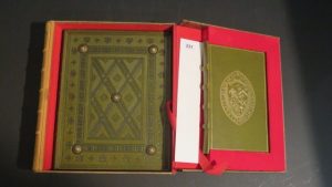 Exemplaire dans sa boite, accompagnée d'un fac-similé du manuscrit de la chanson de Roland de la bibliothèque d'Oxford.