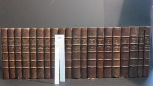 20 volumes in-8° reliés en demi-chagrin marron foncé, dos à nerfs avec auteur, titre et tomaison dorés. Série complète.