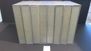 Série complète en 8 volumes in-4° en feuilles sous chemise et étui, titre et auteur doré sur le dos de papier bleu, couvertures rempliées.