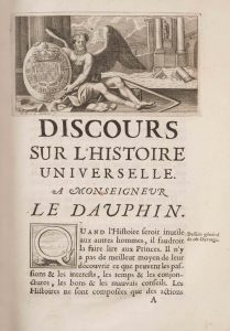 Édition originale, texte à grande marge de cet ouvrage que Bossuet composa vers 1677 pour l’instruction du grand Dauphin, fils de Louis XIV.