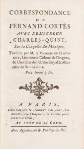 →En dépit de la date incroyablement tardive, il s'agit bien de la première traduction française de ces trois lettres qui donnent de longs rapports de Fernand Cortès, écrits entre 1520 et 1524, pour rendre compte des importants moyens déployés pour conquérir le Mexique. Ces lettres avaient été retrouvées en 1770 par l'Archevêque de Mexico.