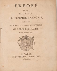 [HISTOIRE] MONTALIVET – DEFERMON – REGNAUD – LACUEE. - Exposé de la situation de l'Empire français, présenté par S. Exc. le Ministre de l'Intérieur au Corps législatif, le 12 Décembre 1809. Paris, Imprimerie Impériale, 1809.