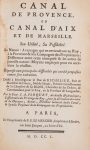 Soutenu par Louis XV et financé par de puissants investisseurs – le duc de Richelieu, en particulier, à qui l'édition est dédiée –, Les travaux débutèrent en 1752 mais le projet s'avéra irréalisable en raison du coût ruineux des travaux : l'entreprise fit faillite après quatre kilomètres réalisés, et Floquet fut embastillé. Il fallut encore attendre deux siècles pour que le projet du canal de Provence devienne réalité. Bon état, quelques annotations à l’encre, mors fendus.