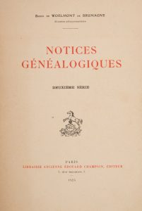 [NOBLESSE] WOELMONT DE BRUMAGNE (Henri Baron de). - Notices généalogiques. Première et deuxième séries. Paris, Librairie ancienne Edouard Champion, 1923.