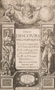 GUIBELET (Jourdain). - Trois Discours philosophiques. Le I. de la comparaison de l'Homme avec le Monde. Le II. du Principe de la génération de l'Homme. Le III. de l'Humeur mélancholique. Mis de nouveau en lumière par Jourdain Guibelet...