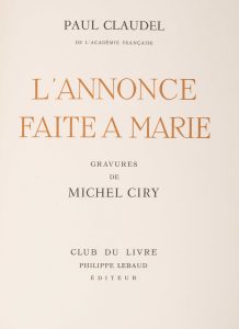 CLAUDEL (Paul) - [CIRY]. – L’annonce faite à Marie. Paris, Club du Livre - Philippe Lebaud, collection Gravure Contemporaine, 1964.