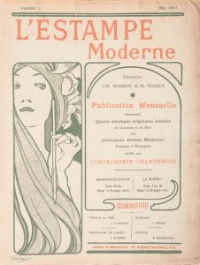 L'Estampe moderne fut fondée par l'éditeur Henri Piazza et le critique d'art Charles Masson, futur directeur du musée de Luxembourg. Il parut 24 numéros de mai 1897 à avril 1899, chacun illustré de 4 estampes inédites sous serpentes légendées et d’extraits de texte littéraires et poétiques. 4 estampes ont été offertes en prime.