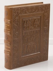 relié plein maroquin estampé à froid, tête dorée (reliure postiche du XIIe) dans emboîtage.