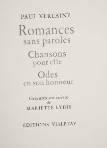 VERLAINE (Paul) - LYDIS (M.). - Romances sans paroles. Vialetay, Paris, 1966.