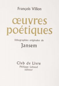 VILLON (François) - [JANSEM]. – Œuvres poétiques. Paris, Club du Livre - Philippe Lebaud, collection Gravure Contemporaine, 1966.