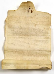 [Abbaye de SAINT-DENIS]. Charte. Monastère de St-Denis hors les murs, 4 avril 1486. 3 vélins cousus en rouleau