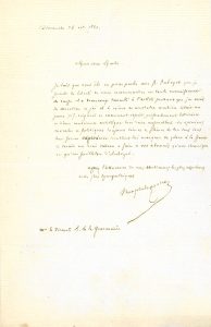 Théophile GAUTIER. 1811-1872. Écrivain poète. L.A.S. au Vicomte Arthur de La Guéronnière. Dimanche 26 octobre 1862.
