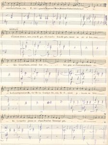 mise au propre manuscrite de la partie chantée dans sa nouvelle tonalité.