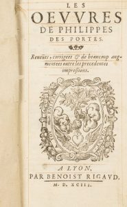 [DESPORTES]. Les oevvres de Philippes des Portes. Reueües, corrigees & de beaucoup augmentees outre les precedentes impressions. Lyon, Benoist Rigaud, 1593.