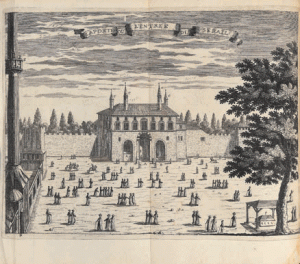 Édition accompagné de 4 GRAVURES DANS LE TEXTE ET DE 13 PLANCHES REPLIÉES GRAVÉES À L'EAU-FORTE AVEC UNE EXTRÊME MINUTIE par Jan Luyken et Johannes van den Aveele dont deux longs panoramas du Grand Sérail et du port de Constantinople.