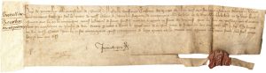 —Pièce signée par son Sceau, du Maréchal de Bourgogne PONTAILLIER, avec contresignature autographe du trésorier Jehan CHAPON – au document est collée une note autographe d’un des trois d’HOZIER, auteurs de père en fils de la « Généalogie des principales famille de France »