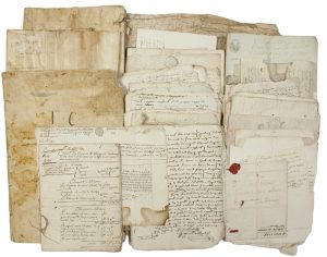 •Cahiers de comptes avec couverture en parchemin, lettres et documents, actes divers –