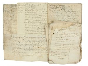 •Liasse de 12 pièces concernant la haute justice et Grurie de la Vicomté de SAINT PIERRE sur dives et le Seigneur de VERSAINVILLE (14). (1745 -1752) – +