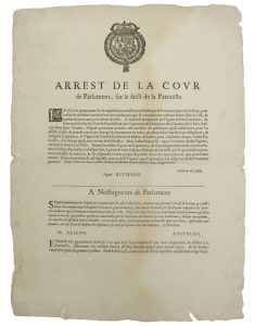 « La Cour provoyant sur la réquisition verbalement faite par le Procureur général du Roy, pour raison de plusieurs excès et larcins nocturnes qui se commettent ordinairement dans la ville… a enjoint au Viguier & son lieutenant de faire tous les soirs le Guet & Patouille,… lesquels pourront prendre tels nombre de personnes qu’ils aviseront pour les assister, saisir, & prendre au corps ceux qu’ils trouveront en crime… Le Viguier & Consuls bailleront le bâton de justice pour s’en servir durant la patouille… » -