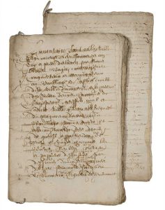 SOMME. AMIENS 1649) – 2 INVENTAIRES pour la vente des meubles et titres délaissés par défunte Damoiselle Agnès DE HET Femme de Jacques LECOUVREUR Seigneur de RENENCOURT – Inventaire fait en la Ville d’Amiens le 11 Janvier 1649, manuscrit...