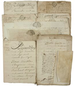 •Partage des biens des Successions de Jullien GAULTIER et Françoise ESNAULT à LOUVIGNY (72) 1754 + Extrait de la remembrance de la Seigneurie de La Massonière paroisse de ST CHRISTOPHE EN CHAMPAGNE (72) –