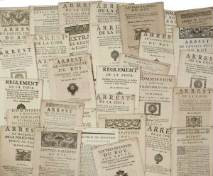 •« Arrest de la Cour, rendu sur la remontrance de M. le Procureur général du Roy, concernant les Assemblées & Délibérations des Paroisses de cette Province. » 1689 + •Arrest… du 23 Janvier 1691, concernant les Droits de Glandages, Pacages, chauffages & tous autres Droits d’Usages. » +