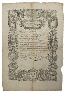 Fait à VALENCIENNES (Nord) ce 12 Janvier 1680. – Pièce signée ESPALION Capitaine de Cavalerie. – 1 page gravée sur bois (39 x 27), rempli à l’encre.