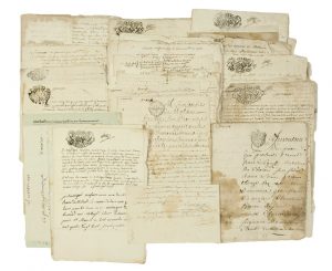 (HAUTE-SAVOIE. SAÔNE-ET-LOIRE). Plus de 65 Documents et quelques lettres, de 1710 à 1786, relatives à Noble famille de MOLAND Baron de SAINT MARCEL et concernant la Seigneurie de CHILLY D’ESTAUX (74) et la Seigneurie de la SAUGÉRÉE (à...