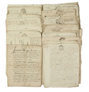 • 72 Actes Seigneuriaux de la justice, Haute et Basse, relevant de la Baronnie de SAINTE HERMINE. Supplique au Sénéchal de la Ville et Baronnie de Sainte-Hermine : (Promesse et contrats de mariages, inventaire après décès, testaments,… concernant des habitants de la Vendée.) - +