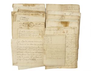 ARDÈCHE) – 60 Lettres et Papiers de Famille concernant Mr. MENET Avocat en Parlement, à sa Campagne à ROYAS (63) près LA VOULTE (07) en VIVARAIS, de 1725 à 1784 –