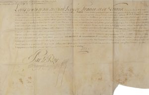 Pièce Signée du Roi LOUIS XV (Secrétaire), contresignée ARGENSON (Marc Pierre de Voyer, Comte d’) 1696-1764. Ministre de la Guerre 1742 -