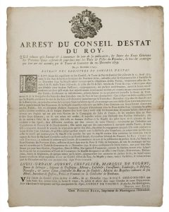 (MARINE. CORSAIRE. COMPAGNIE DES INDES. BORDEAUX (33) 1746) – « Arrest du Conseil d’État du Roy, qui ordonne qu’à l’avenir & à commencer du jour de sa publication, les Sujets des États-Généraux des Provinces Unis cesseront de jouir...