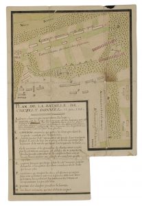 Plan de masse dessiné avec les positions des Armées (Cavalerie, dragons, infanterie), avec notice explicative. –