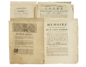 • 2 lettres impr. aux Electeurs du Canton de MELLE – Prospectus pour le Cours d’Histoire naturelle de l’École centrale du Département des Deux-Sèvres, de l’an 7 ; Impr. à Niort, chez P. Elies (1pp in-4°) +